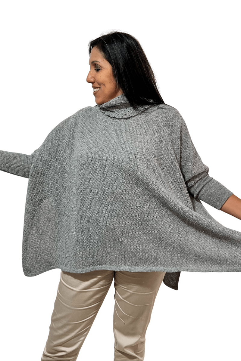 Poncho de textura abrigadora con cuello de cafarena en estilo oversize/ murciélago con mangas